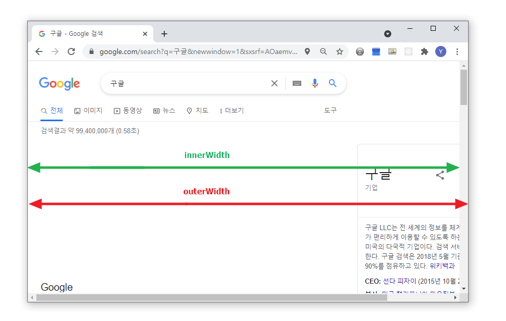 자바스크립트 브라우저 크기 및 브라우저 화면 사이즈