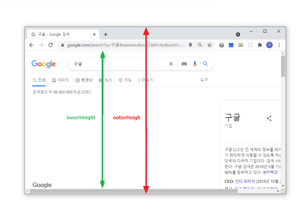 브라우저의 크기를 확인 하기 위해서는 4가지 명령어만 알면 끝난다.